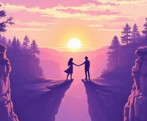 Mãos dadas sob o pôr do sol.